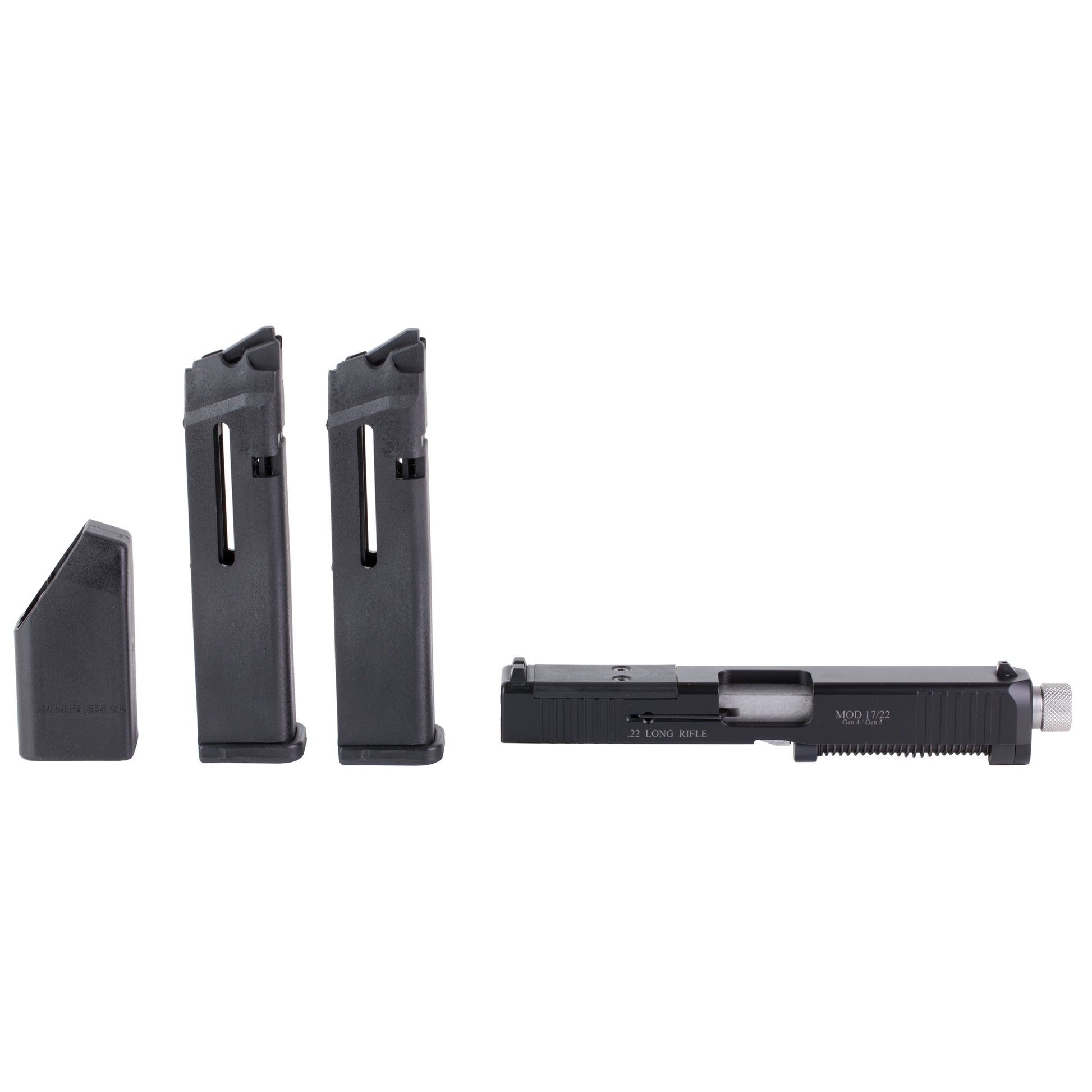 Advantage Arms Conversion Kit: Convert your 9mm/.40 S&W Glock down to 22lr so trips to the range dont break the bank. The MOD series is meant to fit Glock 17/22 Gen 4 and includes two 15 round magazines, a 5" threaded barrel, a range bag, and a recessed cut for a variety of red dot options. Its the perfect tool to work on your muscle memory or to have some fun with your 22lr can. Red Dot Not Included.