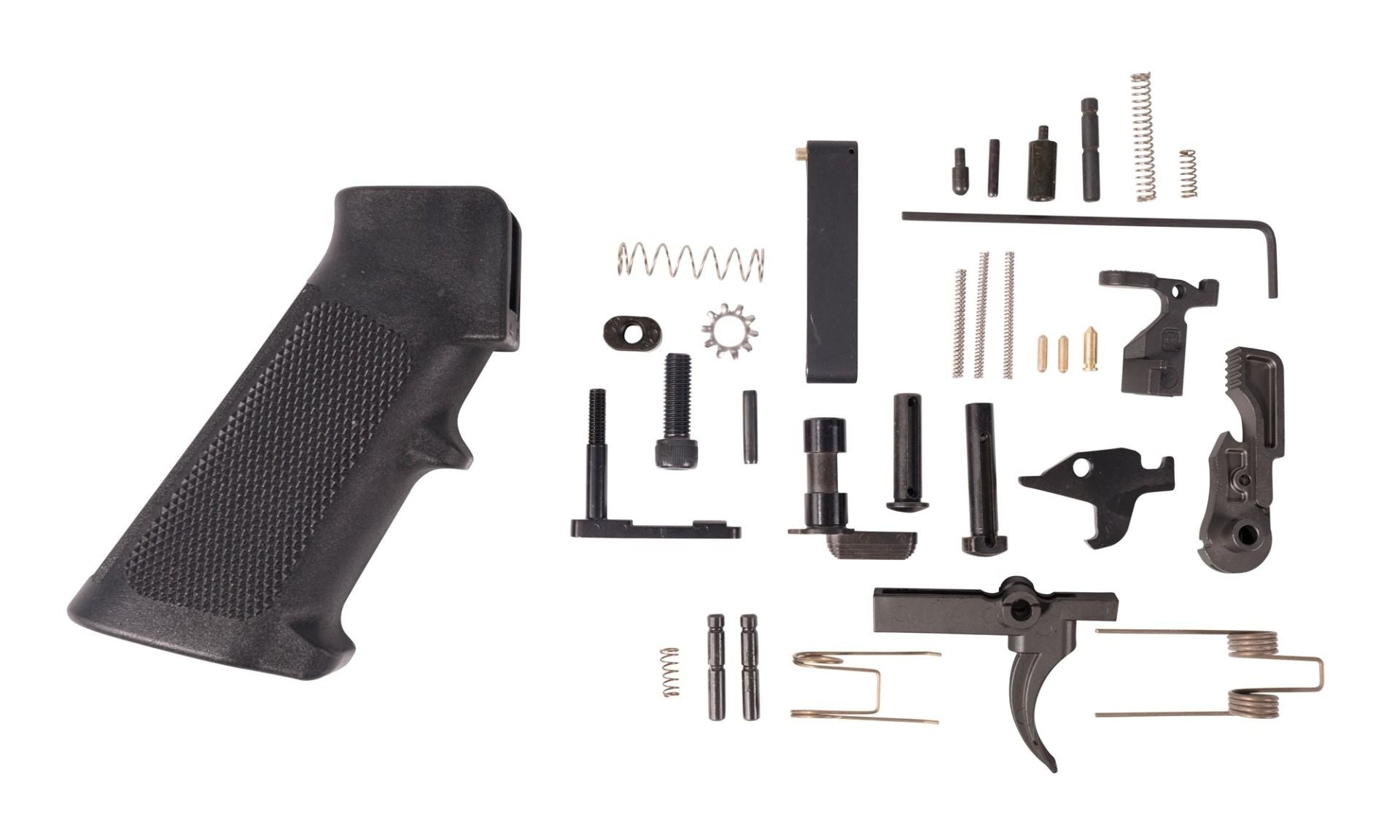 This lower parts kit is ideal for users who prefer a mil-spec build with a focus on durability and performance. The black polymer components provide a professional finish, and the phosphate-coated fire control group ensures longevity. The non-ambidextrous safety selector assembly ensures ease of use without compromising ergonomics. The kit includes all the necessary components to assemble a reliable and accurate AR-15 rifle.