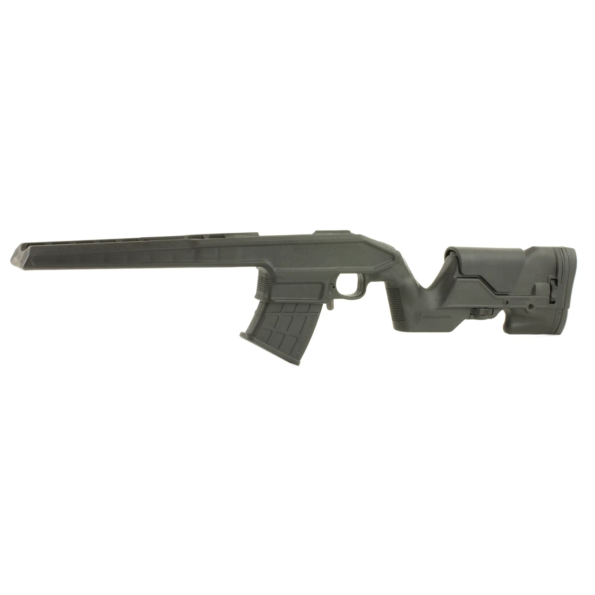 AA9130 - Archangel Opfor Precision Rifle Stock, A drop-in fit next-generation, detachable magazine stock. Constructed of a proprietary carbon-fiber filled polymer for the classic Mosin-Nagant M1891 rifle. The stock fits most M1891 rifles, including the 91/30" M-38" M-44" Chinese T-53 carbines in both hex and round receivers. The stock will fit the Finnish M-39 rifles and carbines with some modification. Detachable magazine included. Featuring a click-adjustable length-of-pull with rubber butt-pad, click-adjustable cheek-riser, a modern ergonomic goose-neck style grip with comfortable palm-swell, and QD sling points that accept push-button style swivels (available separately). The forend allows free-floating of most barrel contours and includes a barrel tensioner. The stock is inletted to accept a Timney Trigger(R) with no modification required - A blanking-piece is supplied to fill the inlet for the Timney Trigger(R) if the OEM trigger is retained. The stock accepts the new Archangel detachable black-polymer 5-round magazine;(supplied), or the 10-round magazine;which is available separately.