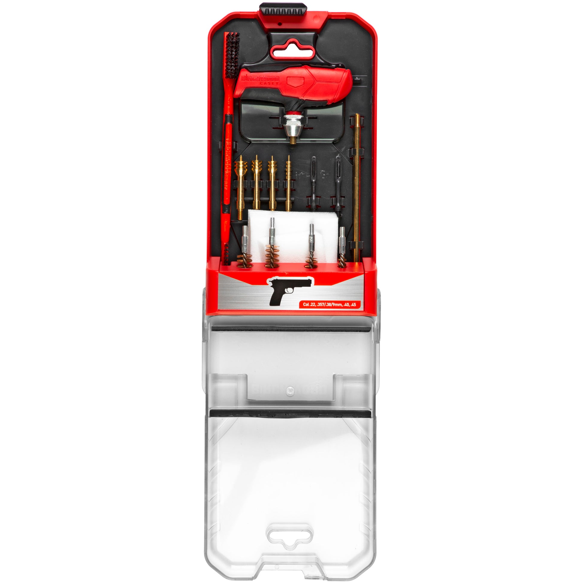 Tired of dirt, grease, and oil building up in your handgun? Experience easier cleaning with the lightweight, durable, and heavy-duty Birchwood Casey Handgun Cleaning Kit! This multi-caliber cleaning kit features 16 pieces and a multi-functional, long-lasting plastic case.
