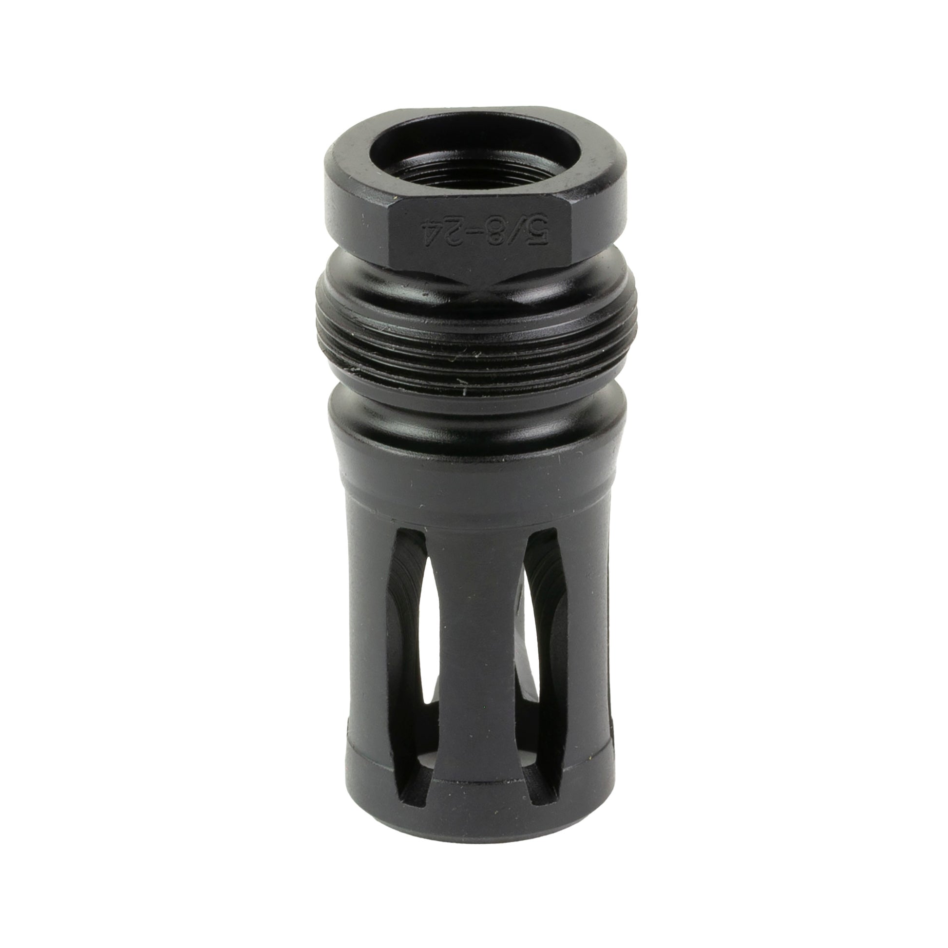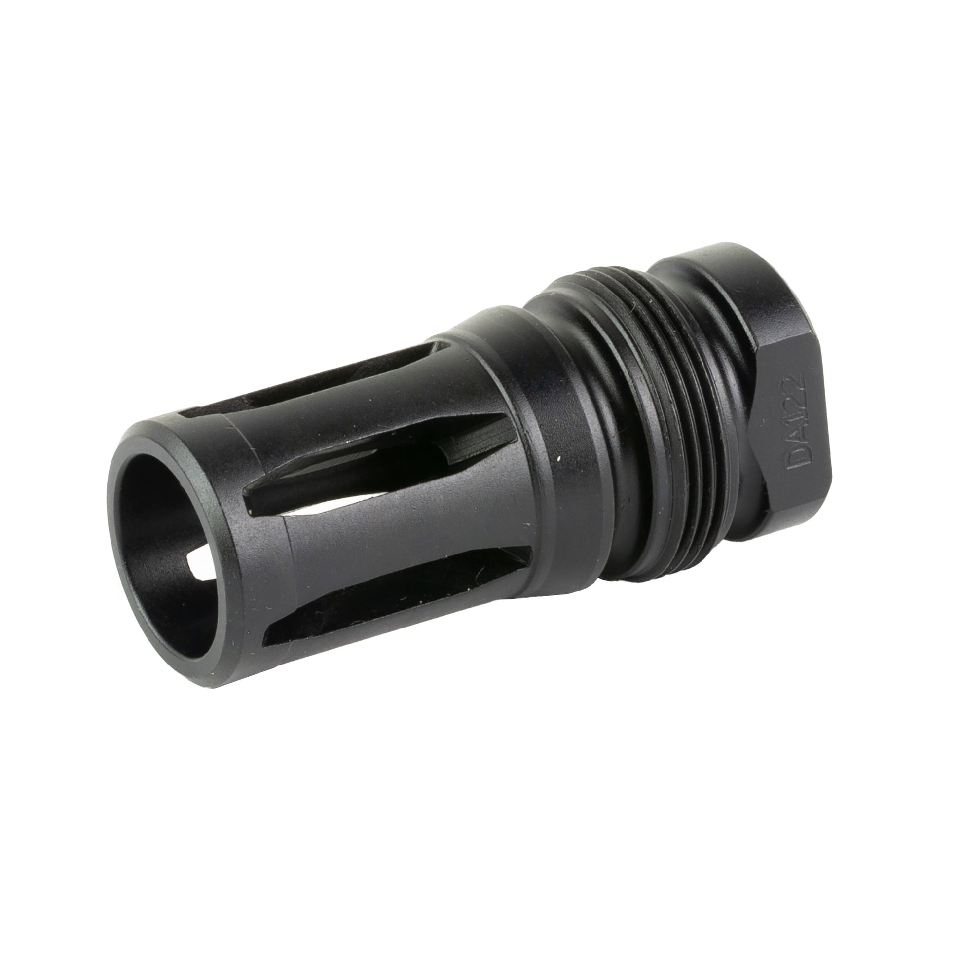 The Xeno Flash Hider and Adapter mate together with left-handed threads, ensuring that the adapter does not unthread from the silencer when removed. This feature also allows for easy verification of the mount's tightness when installing on your firearm. The product features ample tooling surfaces, providing plenty of room and options for adjustments, even when the suppressor is fully installed.