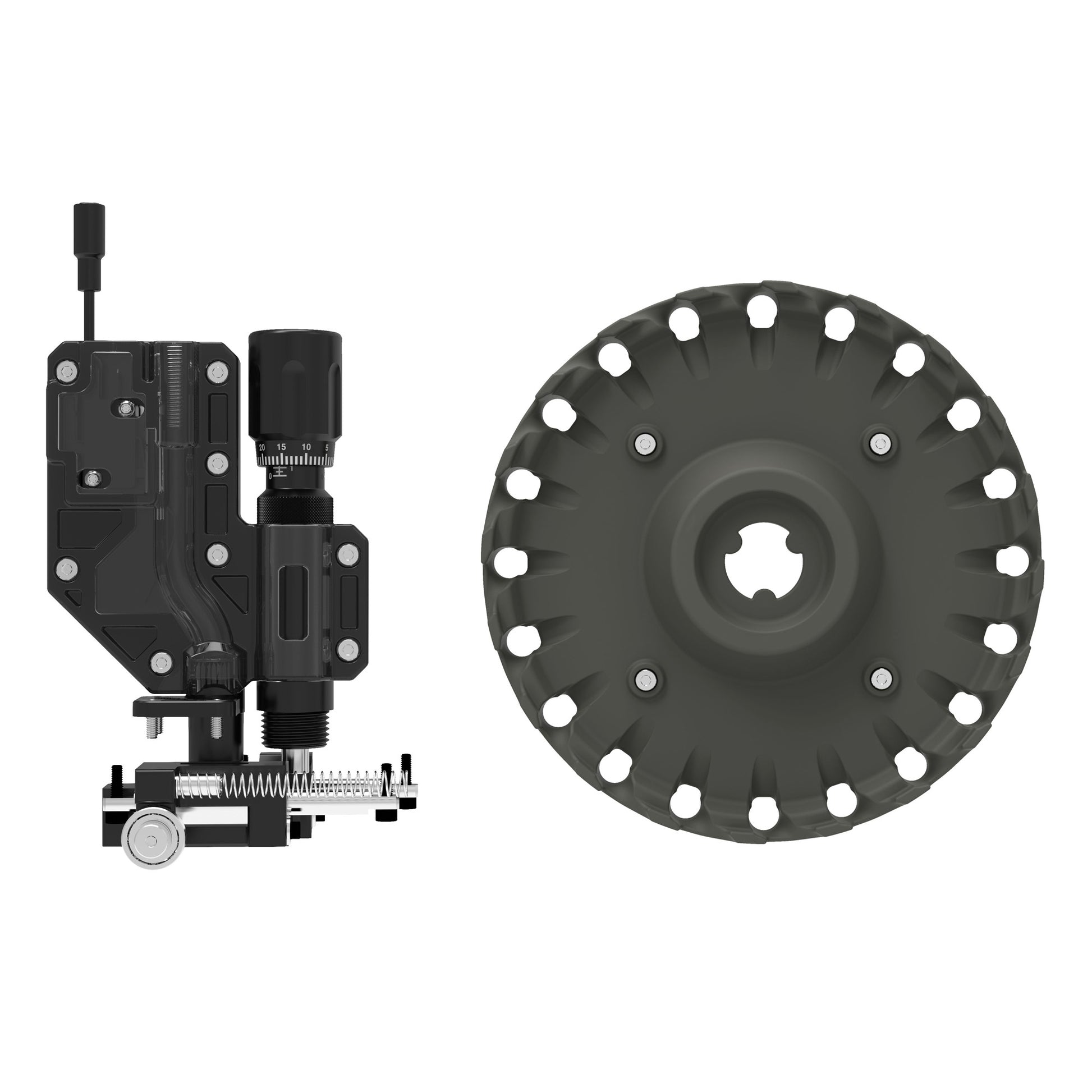 Caliber conversion kits include everything needed to connect the X-10 Bullet Feeder Collator (sold separately) to the X-10 Progressive Reloading Press. Kits include a caliber-specific bullet collator plate, bullet feed and shuttle assembly, and a micrometer adjustable seating die. The bullet feed system is integrated seamlessly into the X-10 Tool Head to feed and seat bullets in the same station.