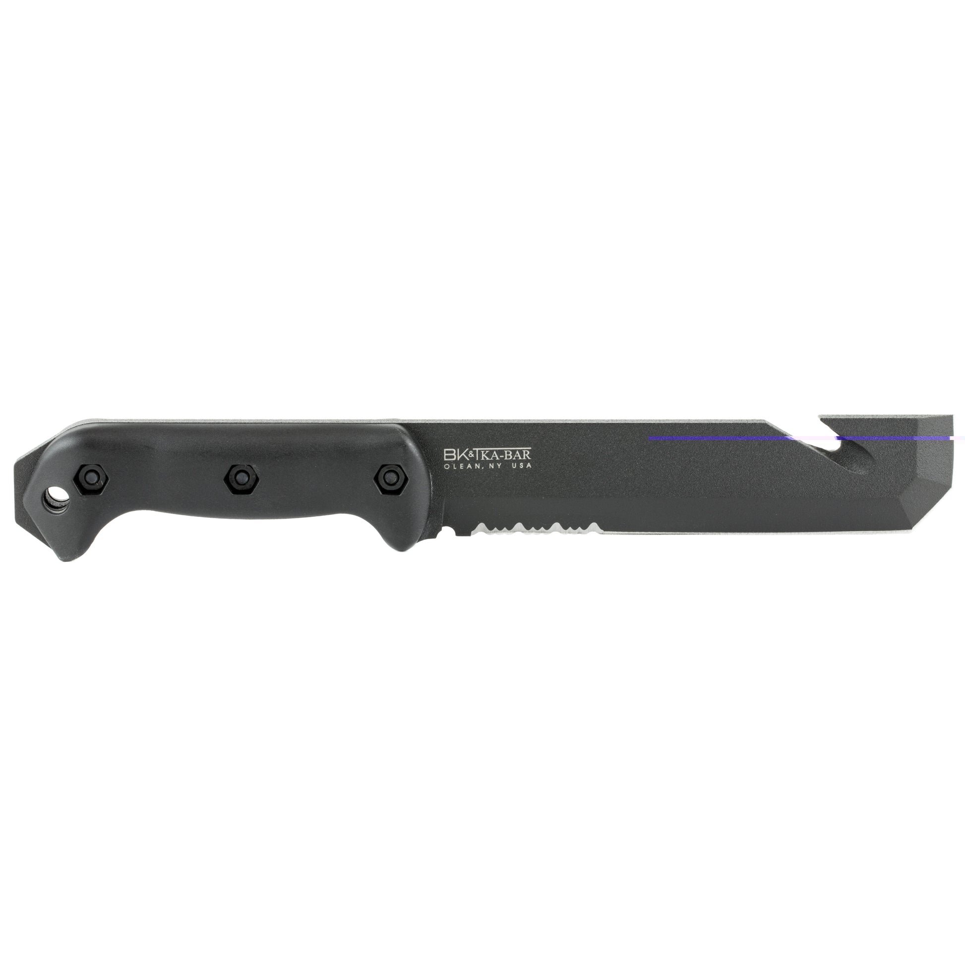 A design collaboration between Ethan Becker of BK&T and John Benner of TDI, the Tac Tool smashes, bashes, pries, hammers and cuts. It is equally powerful at lifting stubborn hinge pins, prying open doors or windows, and hammering out glass as it is efficient at cutting 550 cord. A partially serrated edge makes cutting looped and synthetic materials a breeze. MOLLE compatible hard plastic sheath included. Becker Knives Work for a living.