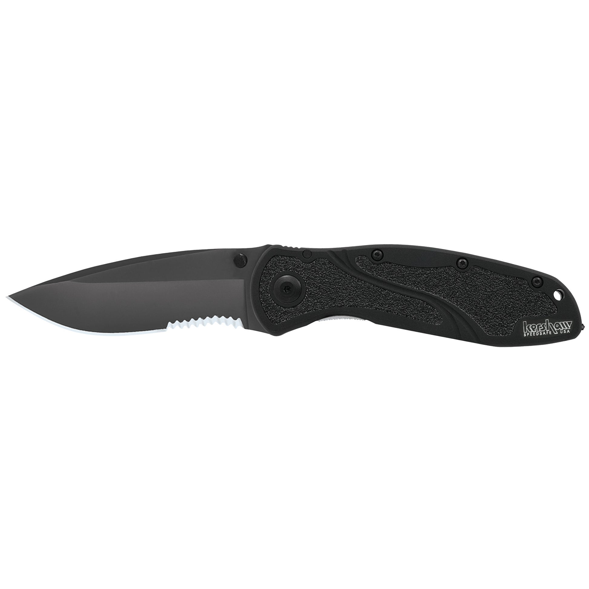 The Blur has been a Kershaw favorite for many years. Its the ideal knife for tough use, whether on the job or around the garage. The recurve blade is built for multitasking with excellent slicing and piercing capabilities, and the aircraft aluminum handles are tough and lightweight. This Blur also has a carbide tip built into those durable handles. And thats important because a plain steel tip wont have the same effect in an emergency. If you need to break out a windshield in order to pull a victim to freedom, its got to be carbide. In the Blur Glassbreaker, it is. The Blurs blade makes it an even more effective rescue tool. Built of high-performance Sandvik 14C28N" the partially serrated blade cuts through seatbelt webbing (or other tough materials) with ease, which can make all the difference at a crucial moment. The Blur Glassbreaker is designed to give you a secure grip, too, even in non-optimal environmental conditions. The handle features Trac-Tec grip tape inserts that provide extra traction to help keep the knife where it belongs-in your hand. The Blur Glassbreaker is equipped with SpeedSafe(R) assisted opening so you can easily open the knife one-handed. Which is also important-because youre not always going to have both hands free in an emergency.