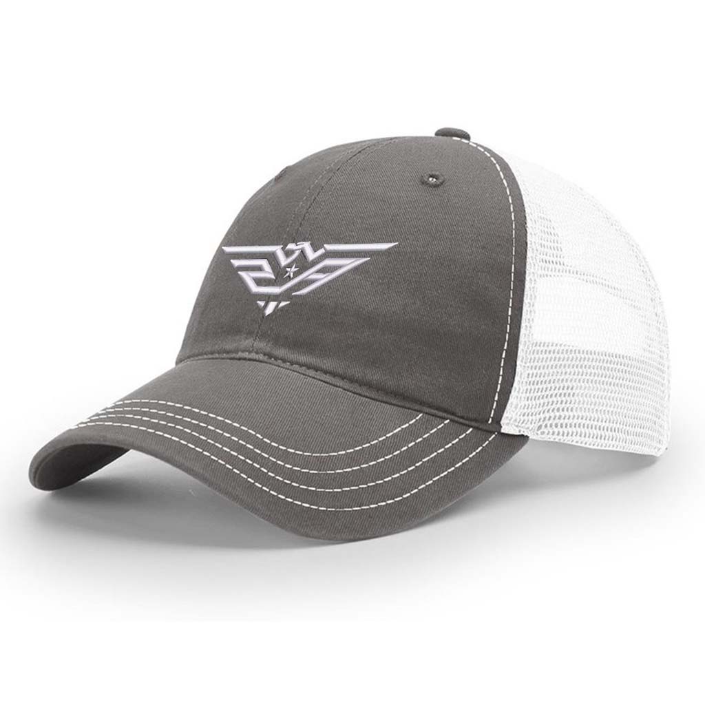 100% cotton front with100% nylon mesh back.Unstructured, low-profile, six-panel.Pre-curved contrast-stitched visorSnapback closure. Features 100% cotton front 100% nylon mesh back Unstructured, low-profile, six-panel Pre-curved contrast-stitched visor Snapback closure Fabric 100% cotton front, 100% nylon mesh