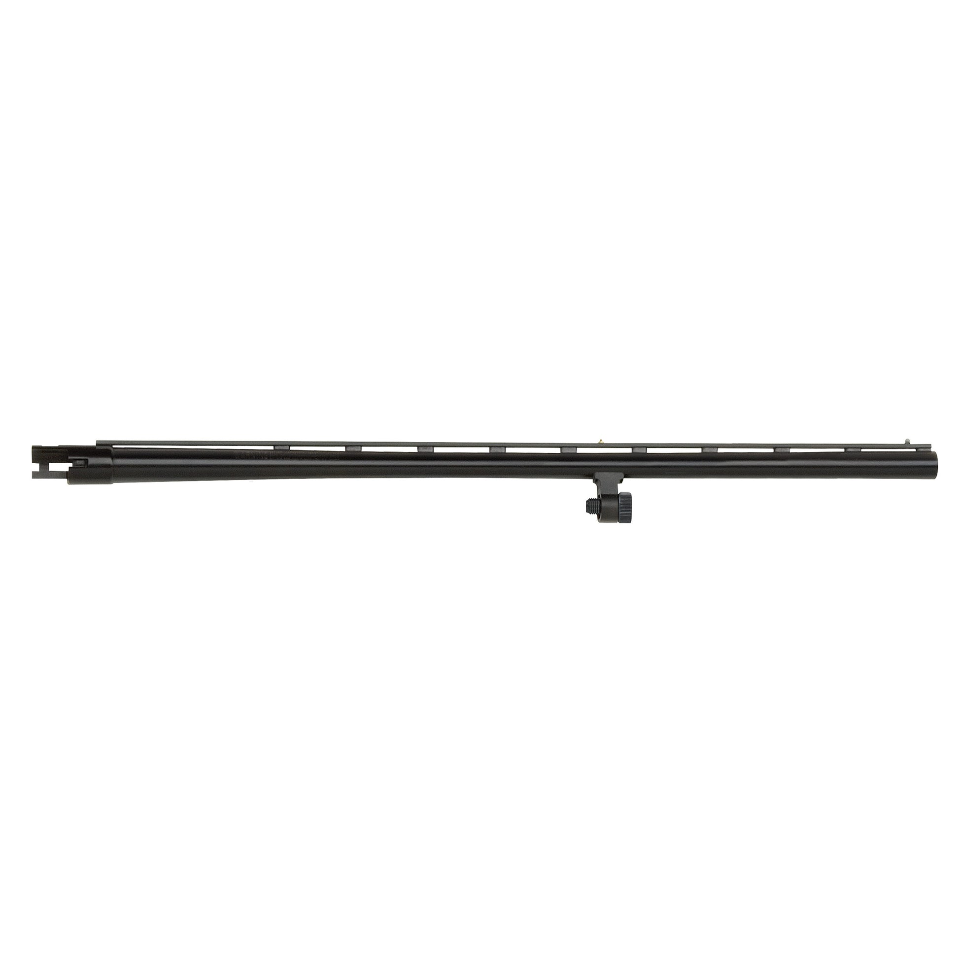 24" All-Purpose barrel with vent rib, dual bead sights, smoothbore, and blued finish. Includes Accu-Choke set (Improved Cylinder, Modified, Full) and choke tube wrench. Compatible with 12 Gauge Mossberg 500 and Maverick 88 6-shot models.