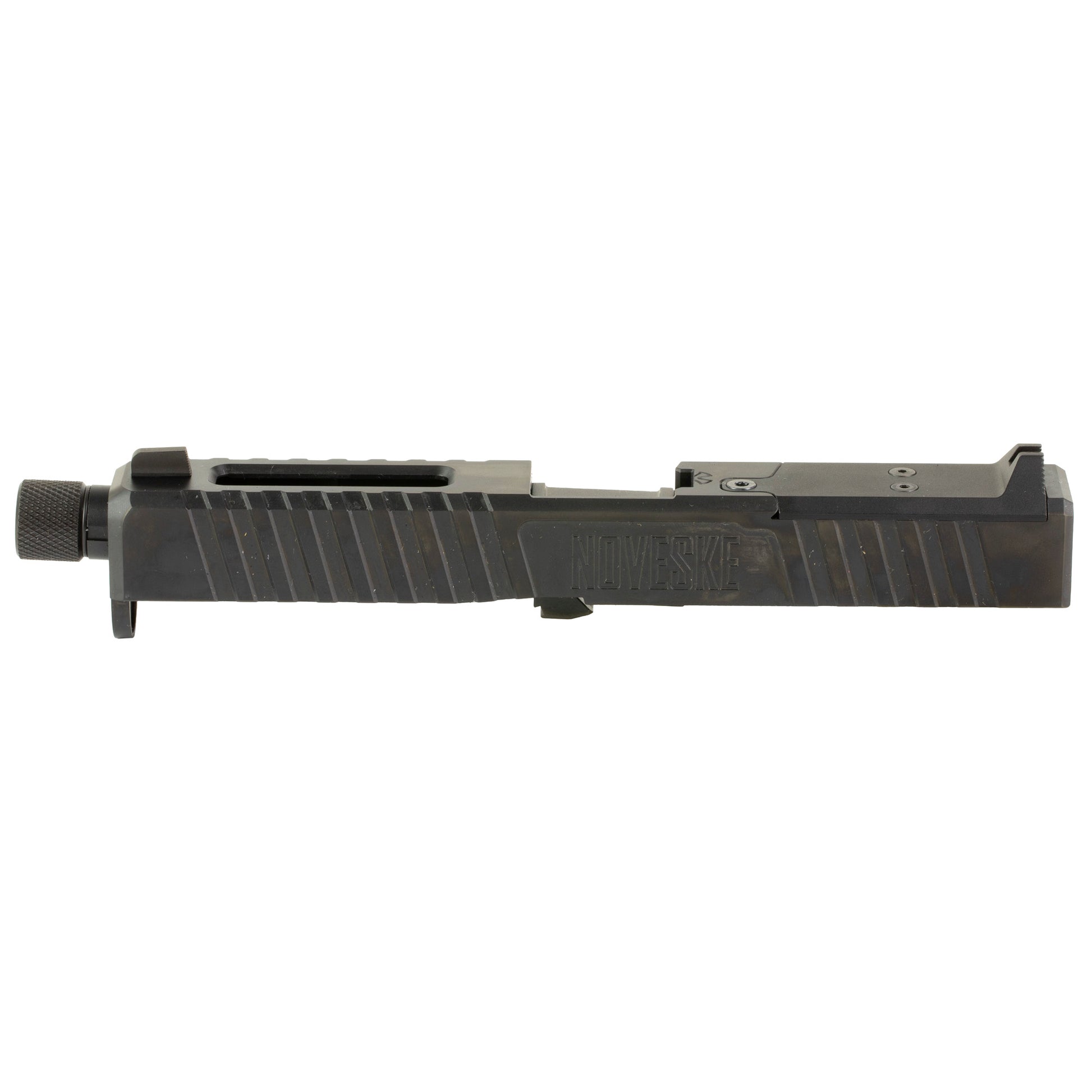 Noveskes Optics Ready Direct Mount (DM) Slides for Glock 17 and 19 pistols allow the versatility of mounting a variety of different optics directly to the slide while having the option to use a forward mounted rear sight. Comes with end plate, cover plate with rear sigh, front sight, and a Noveske Glock Barrel.