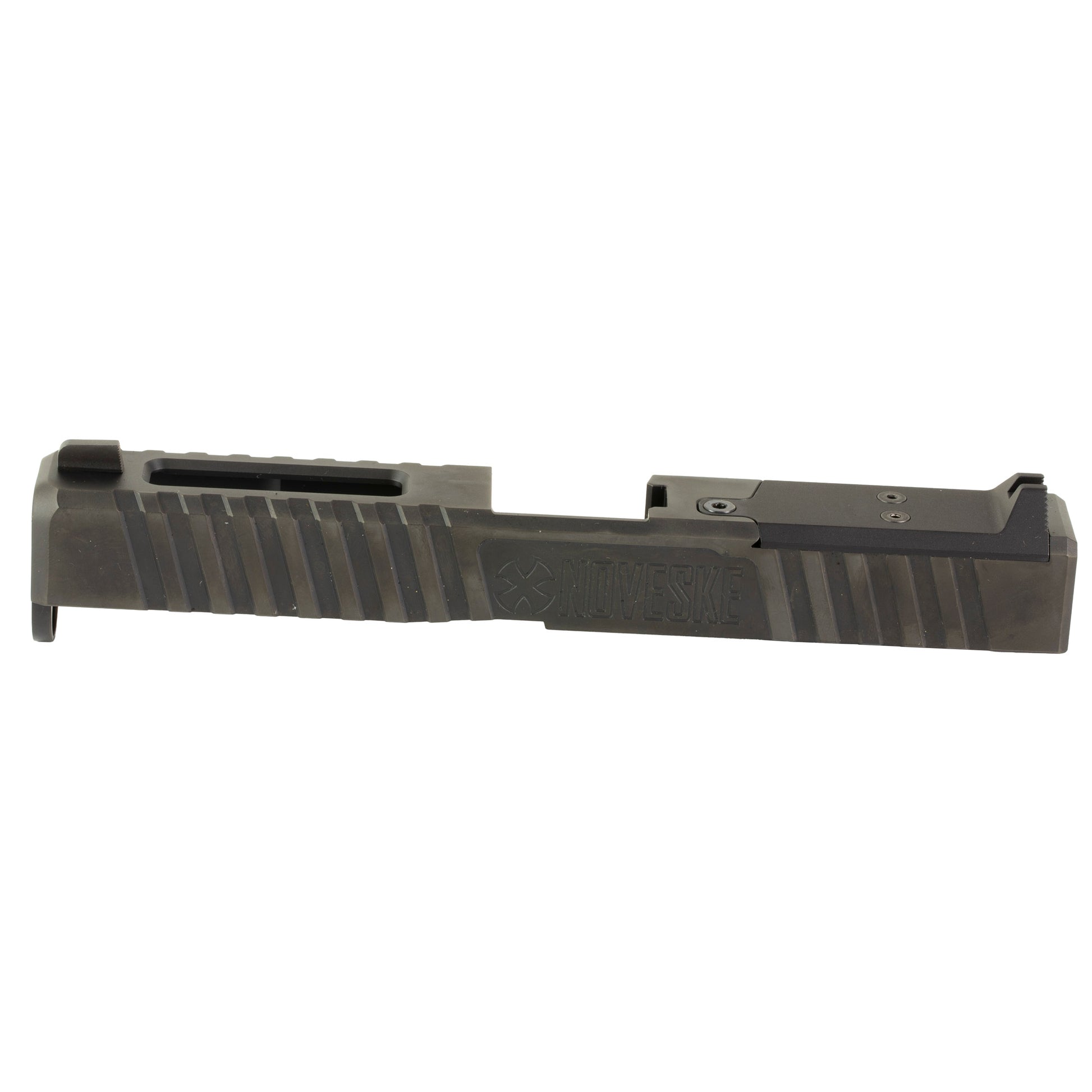 Noveskes Optics Ready Direct Mount (DM) Slides for Glock 17 and 19 pistols allow the versatility of mounting a variety of different optics directly to the slide while having the option to use a forward mounted rear sight. Comes with end plate, cover plate with rear sigh, and a front sight.