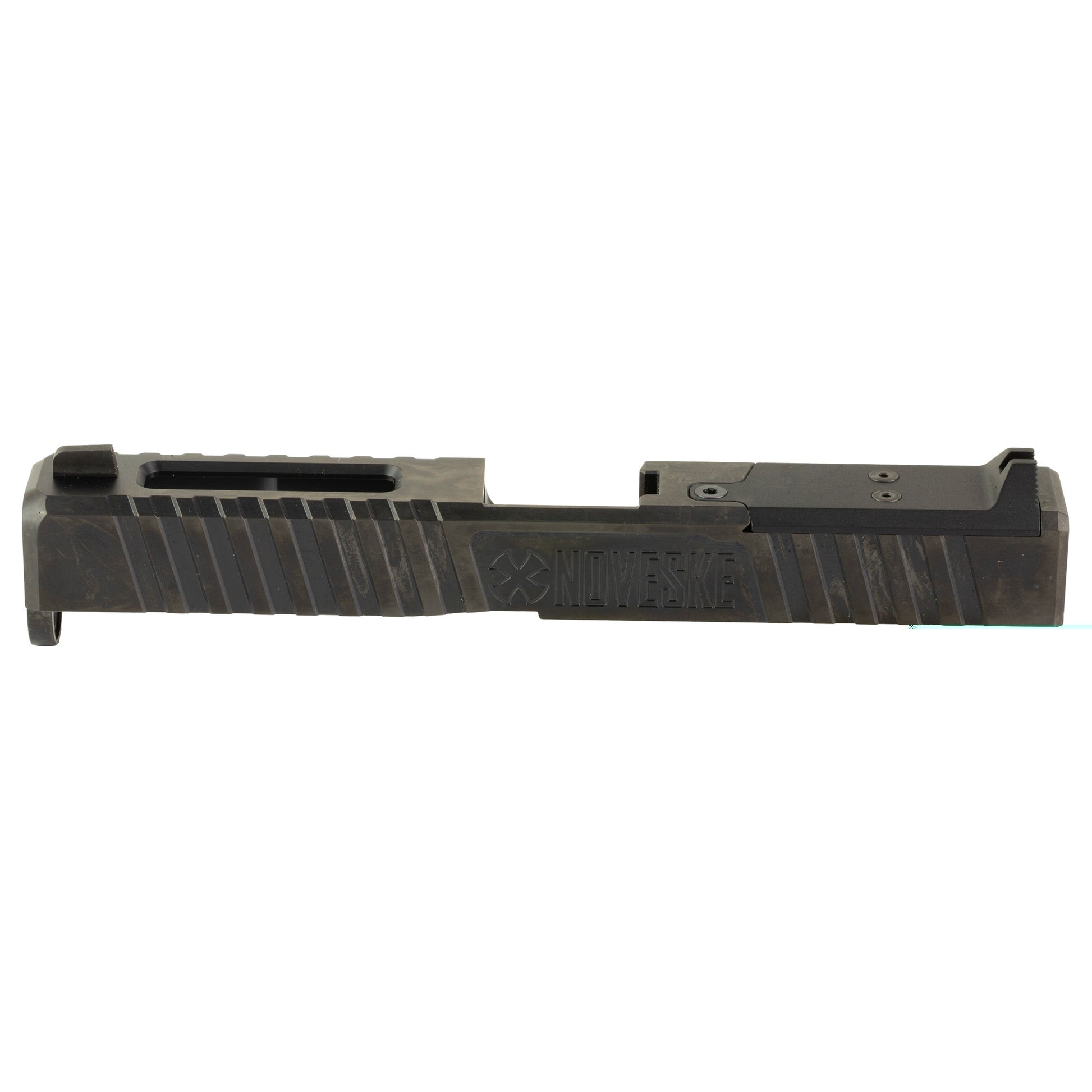 Noveskes Optics Ready Direct Mount (DM) Slides for Glock 17 and 19 pistols allow the versatility of mounting a variety of different optics directly to the slide while having the option to use a forward mounted rear sight. Comes with end plate, cover plate with rear sigh, and a front sight.