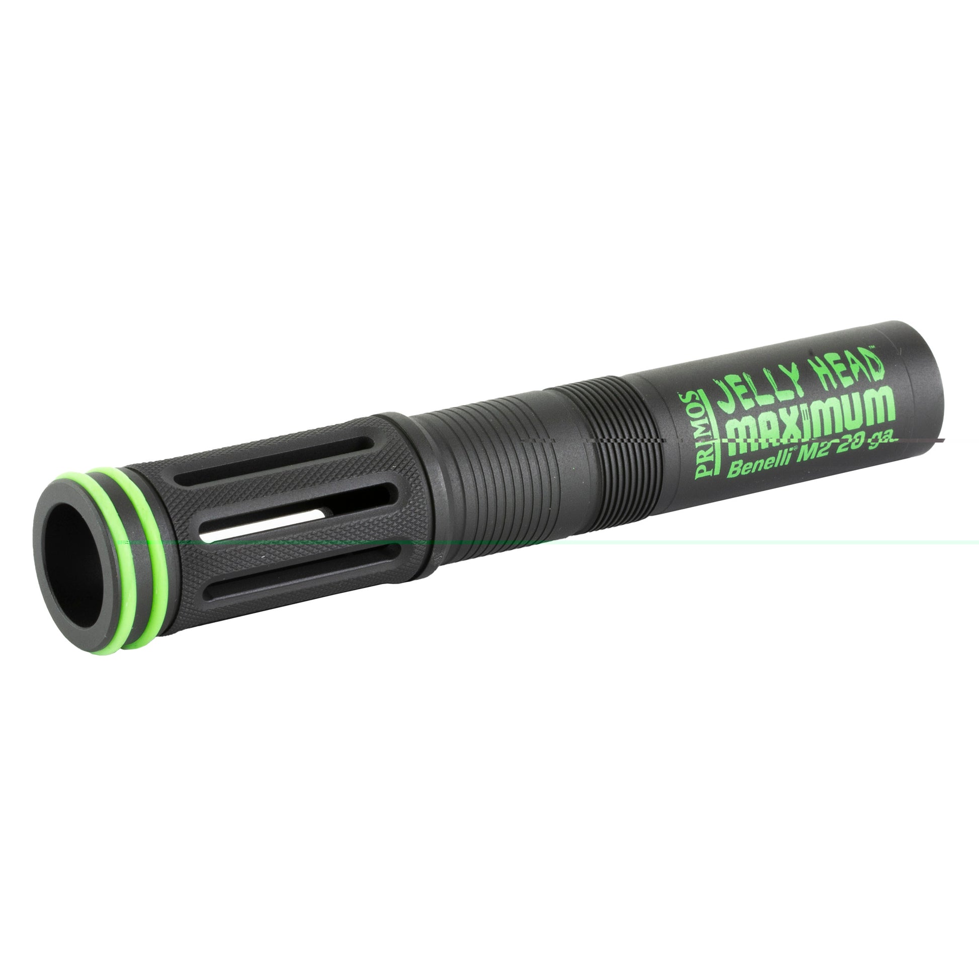 Maximum Range Turkey Choke Tube. Designed to increase the range and pattern density of your favorite turkey gun! The Jelly Head Maximum utilizes an extended taper and fluted ports to tighten patterns up to 20% and reduce recoil allowing you to stop Gobblers in their tracks at even longer ranges! Primo utilizes proprietary Black-T coating, the same protective barrier utilized by the militarys Special Forces to prevent rust and corrosion on weapons in the harshest environments, like turkey hunting.