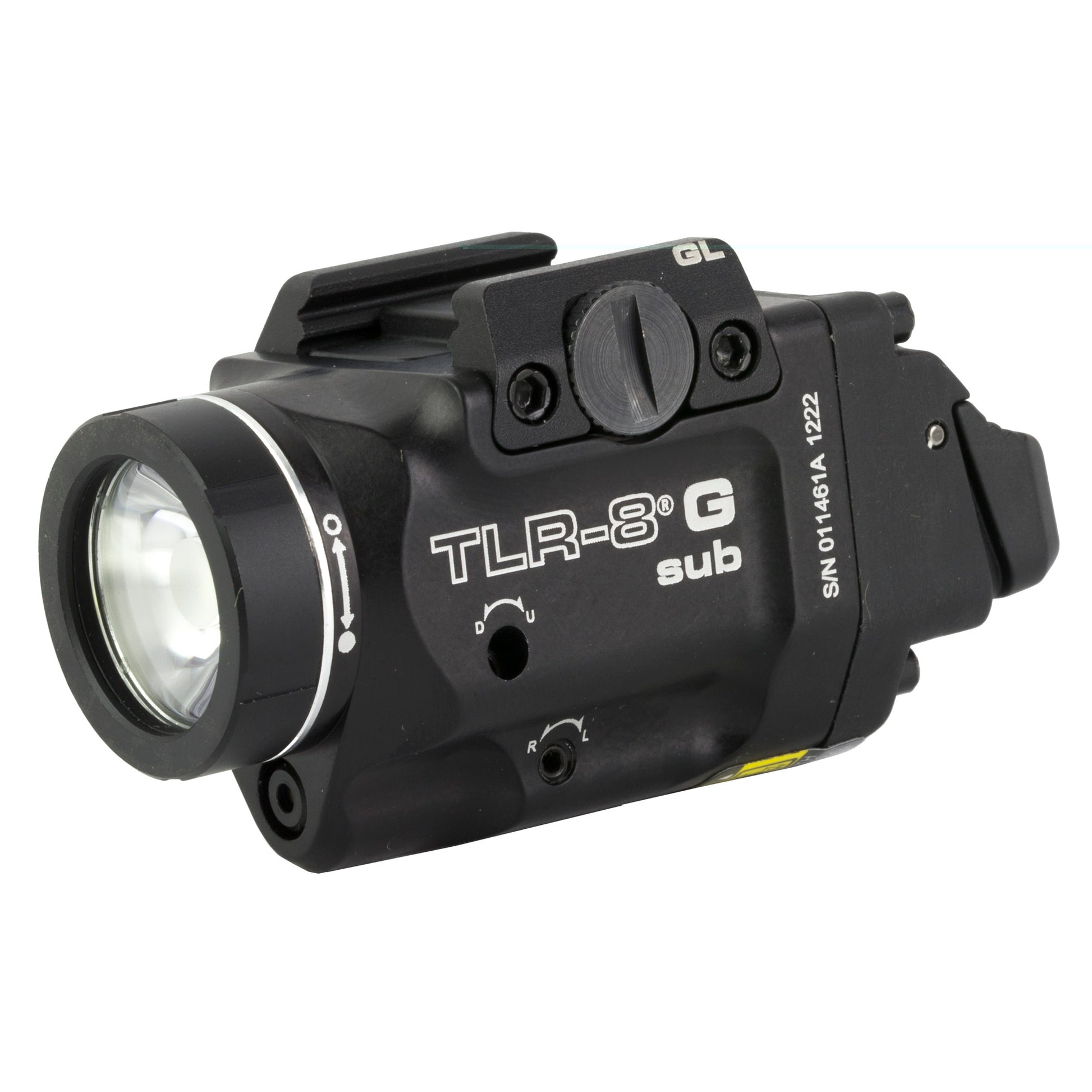Ultra-lightweight & compact, the TLR-8 G Sub is a weapon-mounted tactical light with a green laser. This light features the latest in LED technology for high-lumen operation and provides 1.5 hours of continuous run time from a single lithium battery. The specialized clamp system allows for mounting on the Glock 43X/48 MOS Rail.