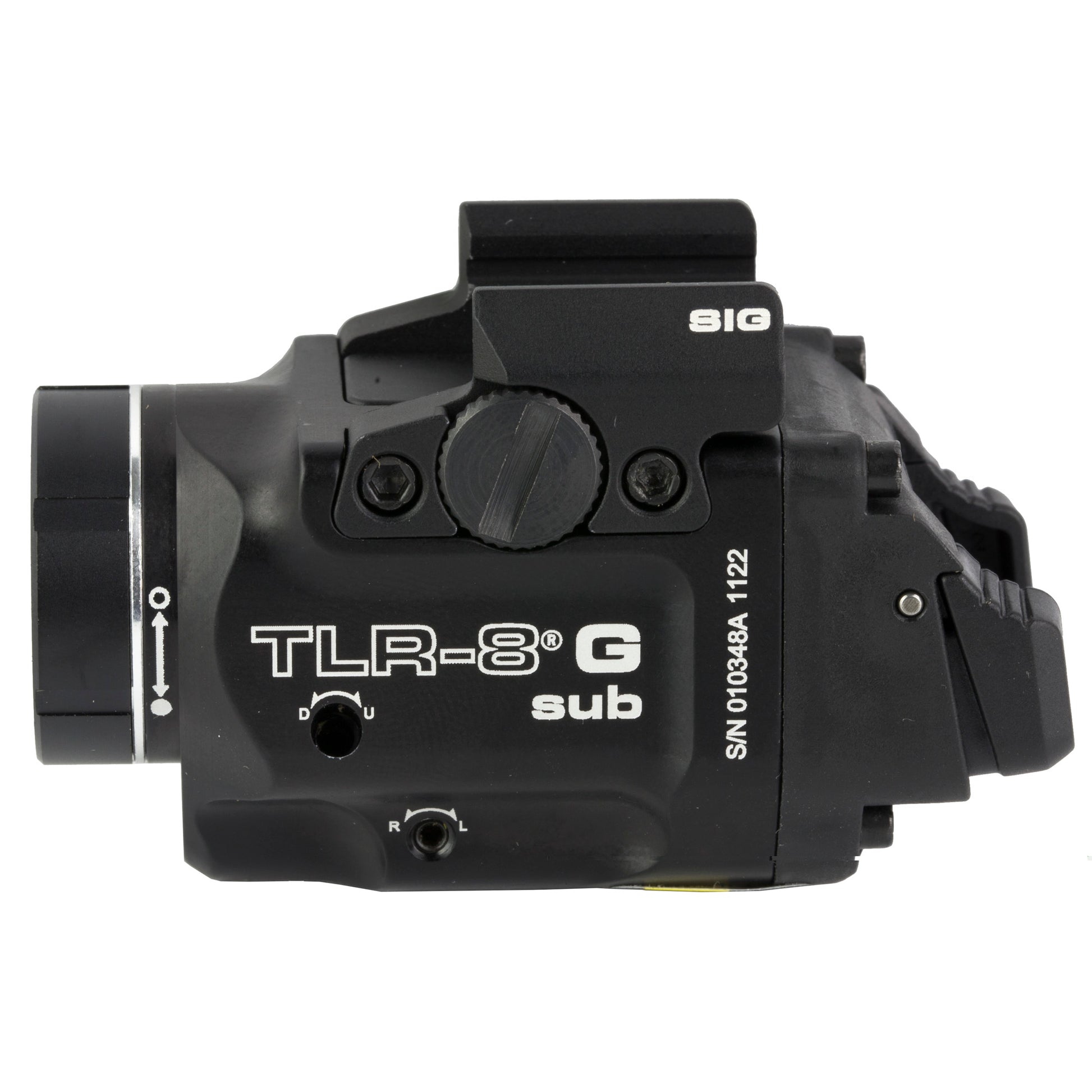 Ultra-lightweight & compact, the TLR-8 G Sub is a weapon-mounted tactical light with a green laser. This light features the latest in LED technology for high-lumen operation and provides 1.5 hours of continuous run time from a single lithium battery. The specialized clamp system allows for mounting on the Sig P365/XL