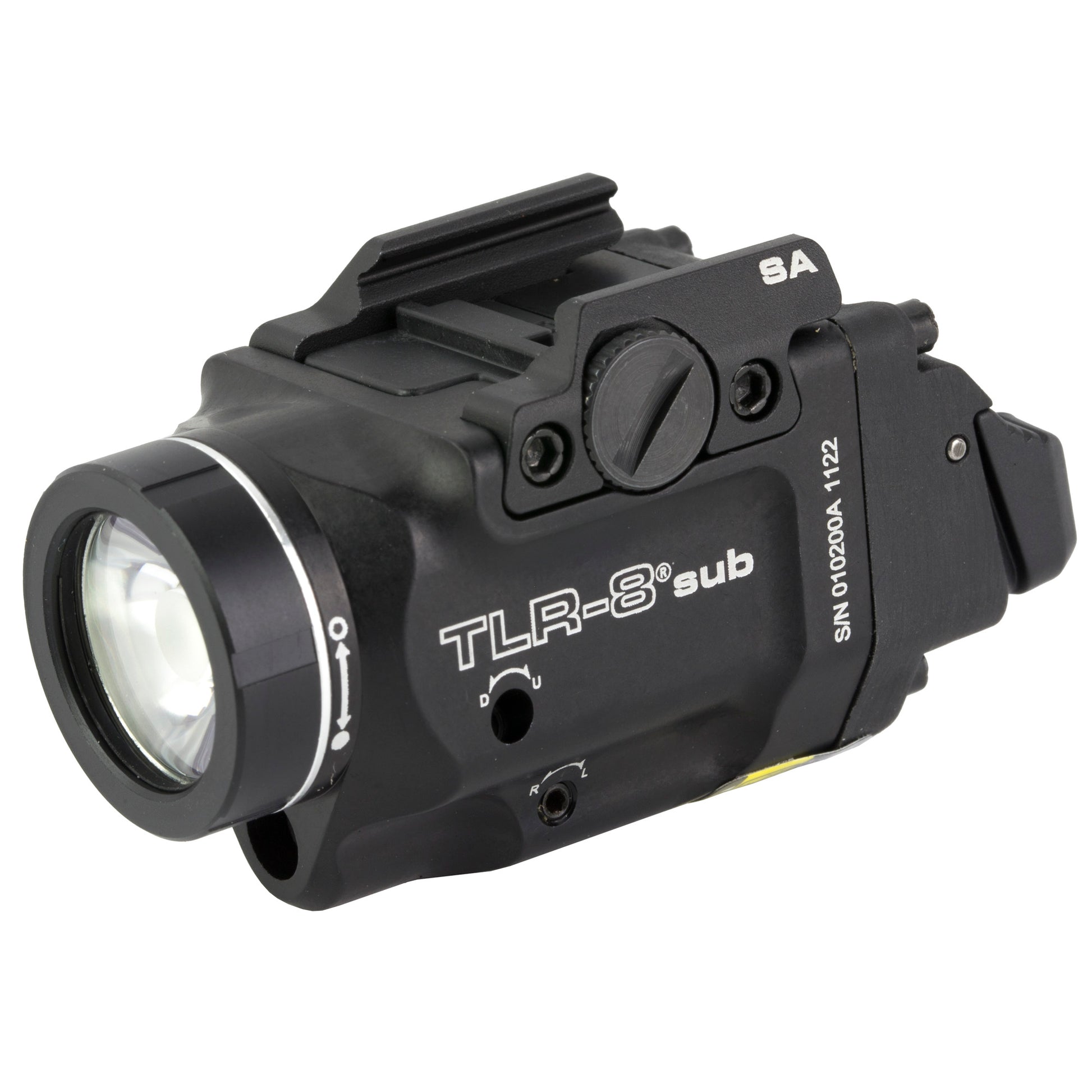 Ultra-lightweight & compact, the TLR-8 sub is a weapon-mounted tactical light with an integrated red laser. This light features the latest in LED technology for high-lumen operation and provides 1.5 hours of continuous run time from a single lithium battery. The specialized clamp system allows for mounting on the Springfield Hellcat.