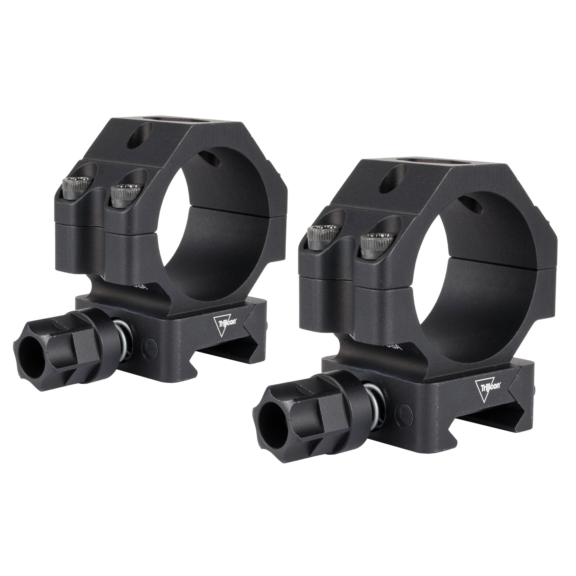 Trijicon Ring Mounts w/ Q-LOC Technology feature a 30mm tube, and are designed to keep the optic as low as possible for hunting and long range precision rifle applications. Featuring a Mil-Spec drop test rated 6061-T6 aluminum design and an easy to use one handed tool less mounting system. The spring-loaded design allows for constant retention and maintaining of zero even if the knobs are not tightened. The Ring mounts boast a low profile design with superior return to zero performance and are compatible with any Mil-Spec or NATO Picatinny rail.