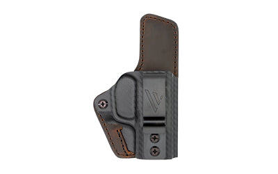 Versacarrys Compound Custom holster is perfect for those looking to carry everyday and maintain comfort. The holster has a distressed brown leather back paired to a rigid polymer front. The holster features a tension adjuster to find the perfect fit and a waistband clip to securely carry your holster.